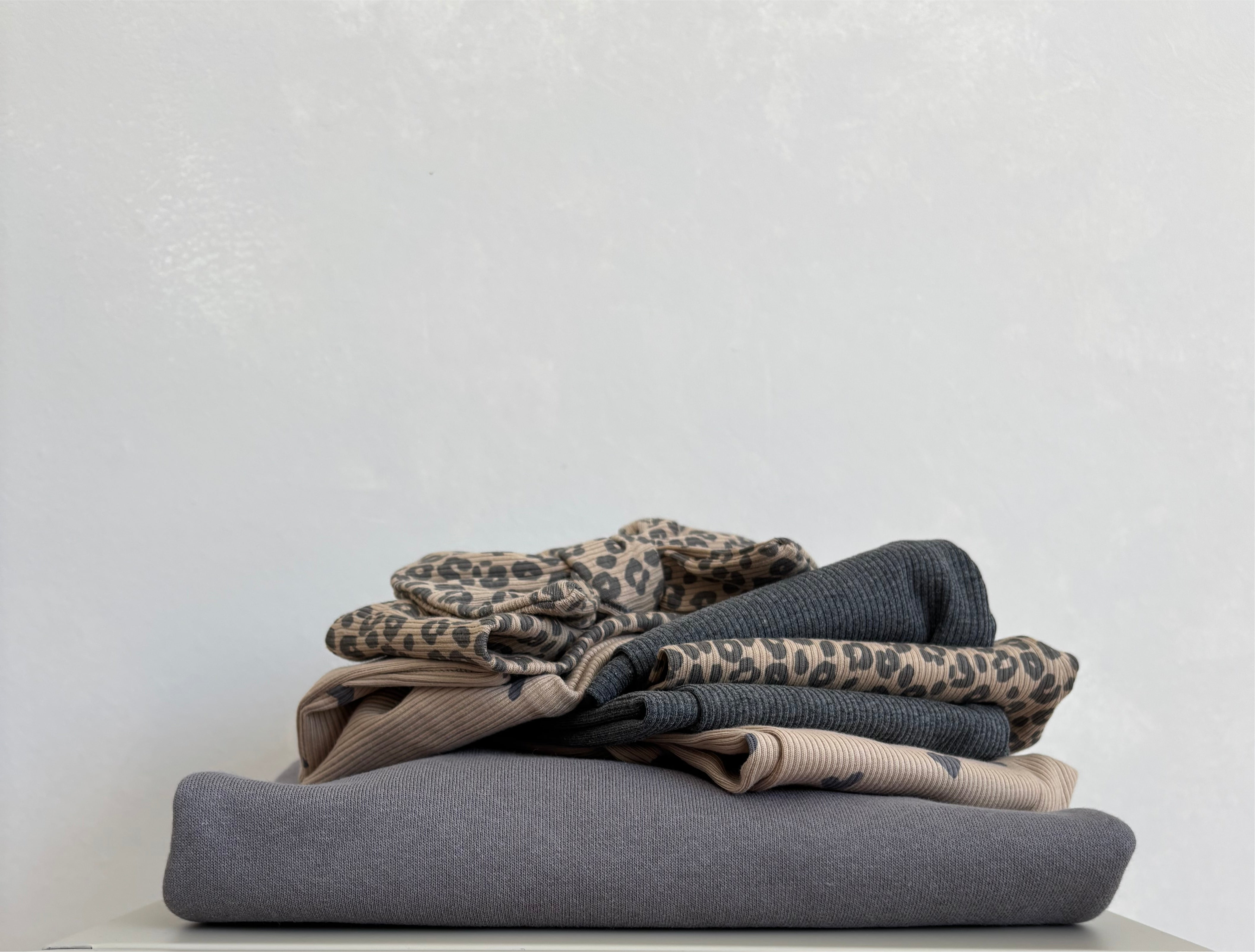HANDMADE 100% Baumwoll rippstrickjersey Leopardenmusster Sand/Antrazith. Lesen Sie mehr